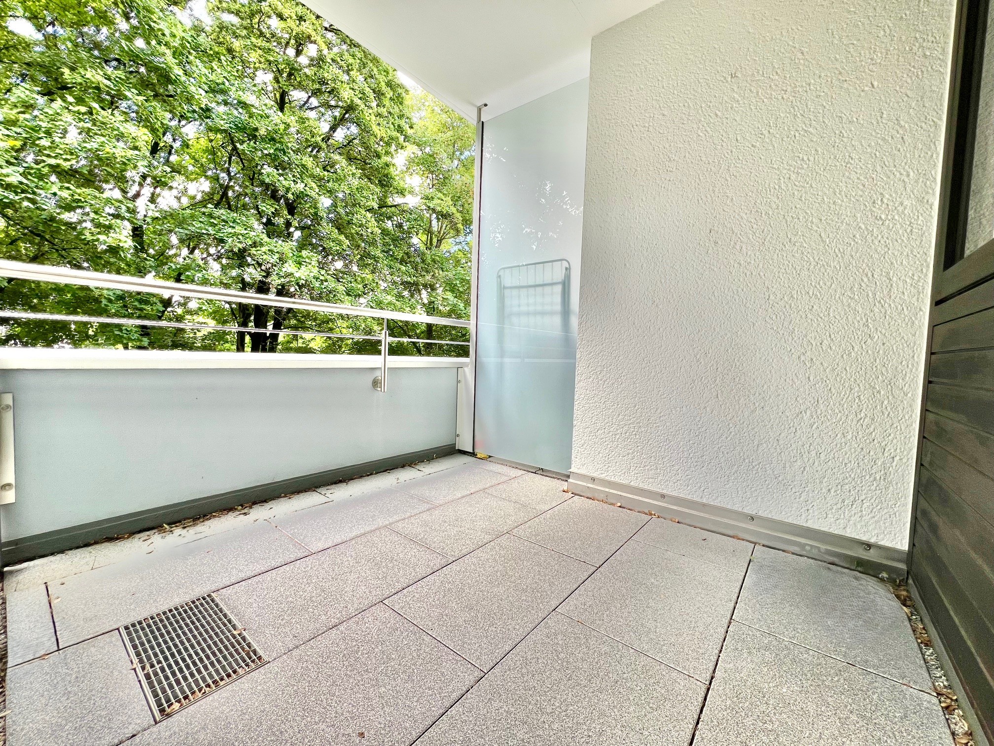 Der großzügige, teilüberdachte Balkon mit Südwest-Ausrichtung lädt vor allem in den Sommermonaten zum Entspannen ein.