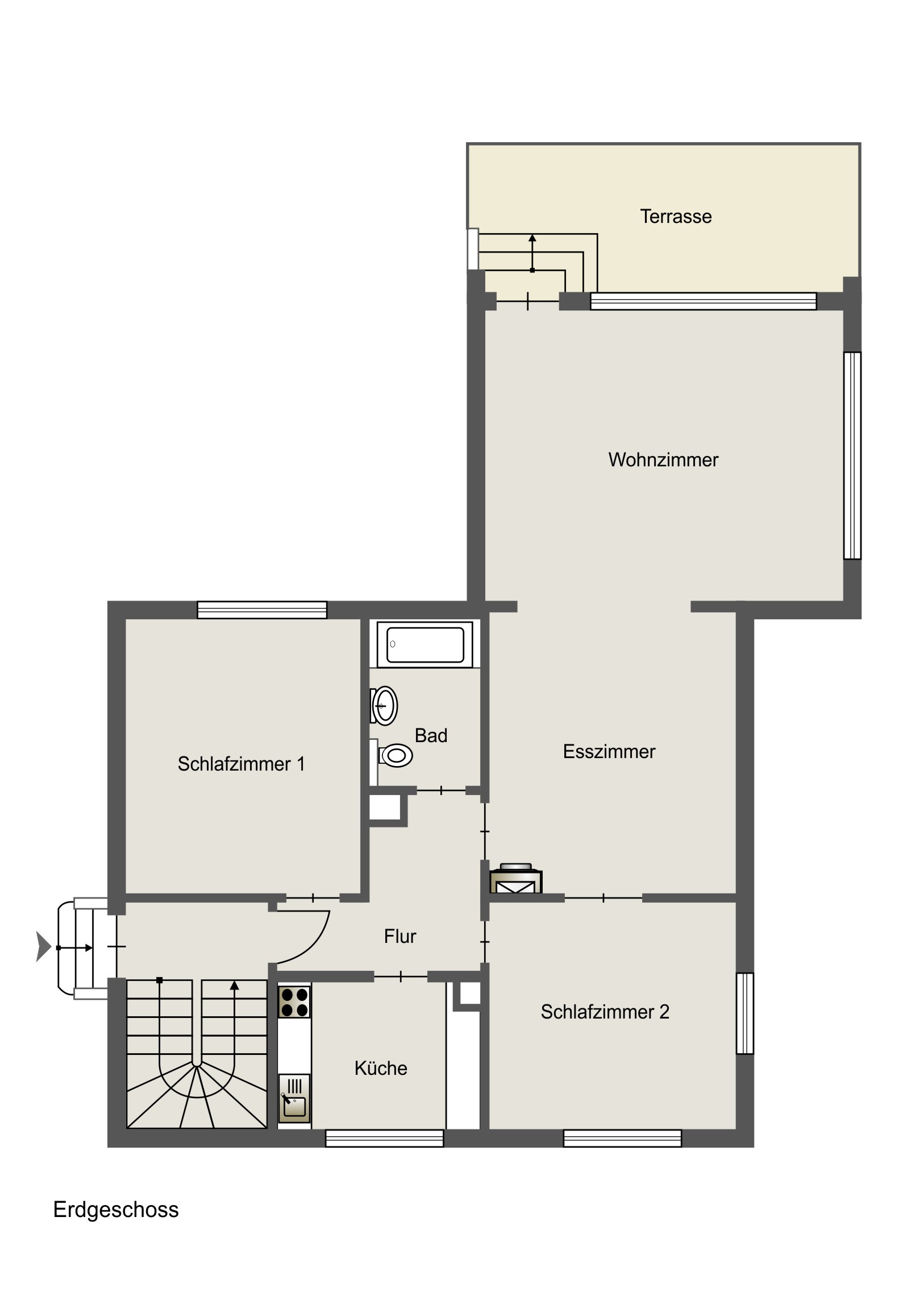 Erdgeschoss (vermietet):